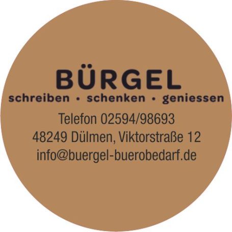 Zum 01.03.2025 ist Bürgel Bürobedarf /Bürgel schreiben - schenken - genießen in neue Räumlichkeiten an der Viktorstraße 12 in Dülmen gezogen. Hier führen wir weiterhin Schul,. und Bürobedarfsartikel, Druckerpatronen und Tinten. Außerdem haben wir unser Sortiment um kulinarik undviele schöne Geschenkartikel erweitert.